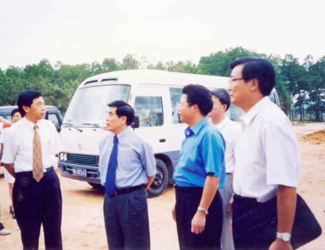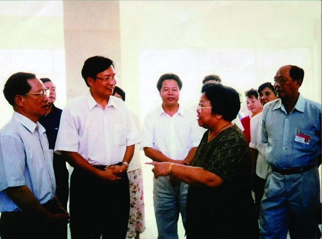 时任全国人大科教文卫委员会主任朱开轩(右二)等领导视察beat365